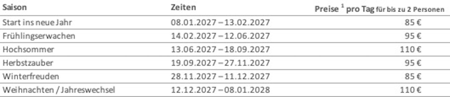 Preise und Saisonzeiten 2027