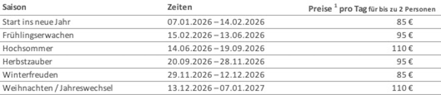 Preise und Saisonzeiten 2026
